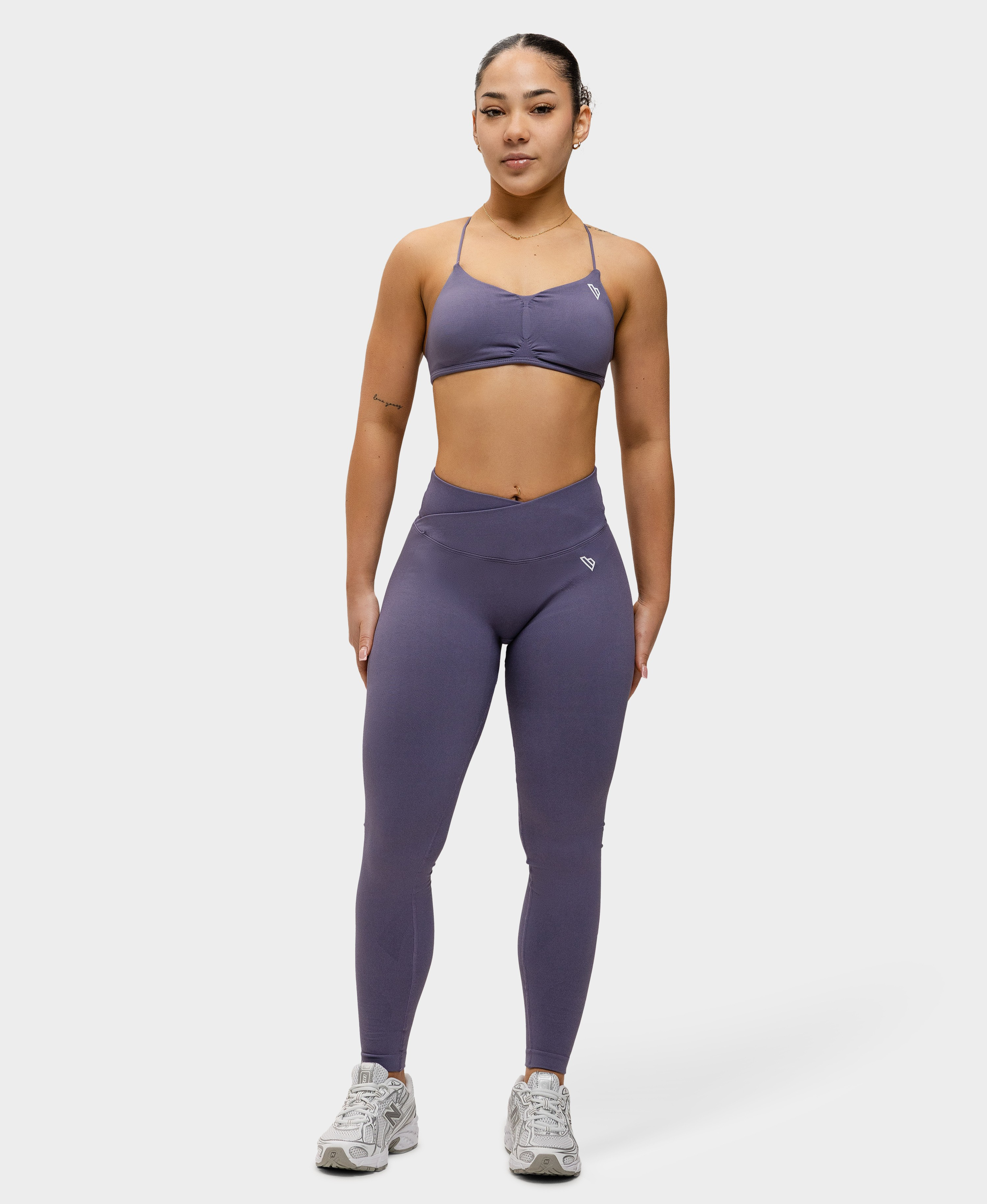 - Crossover V-shape ribbed waistband