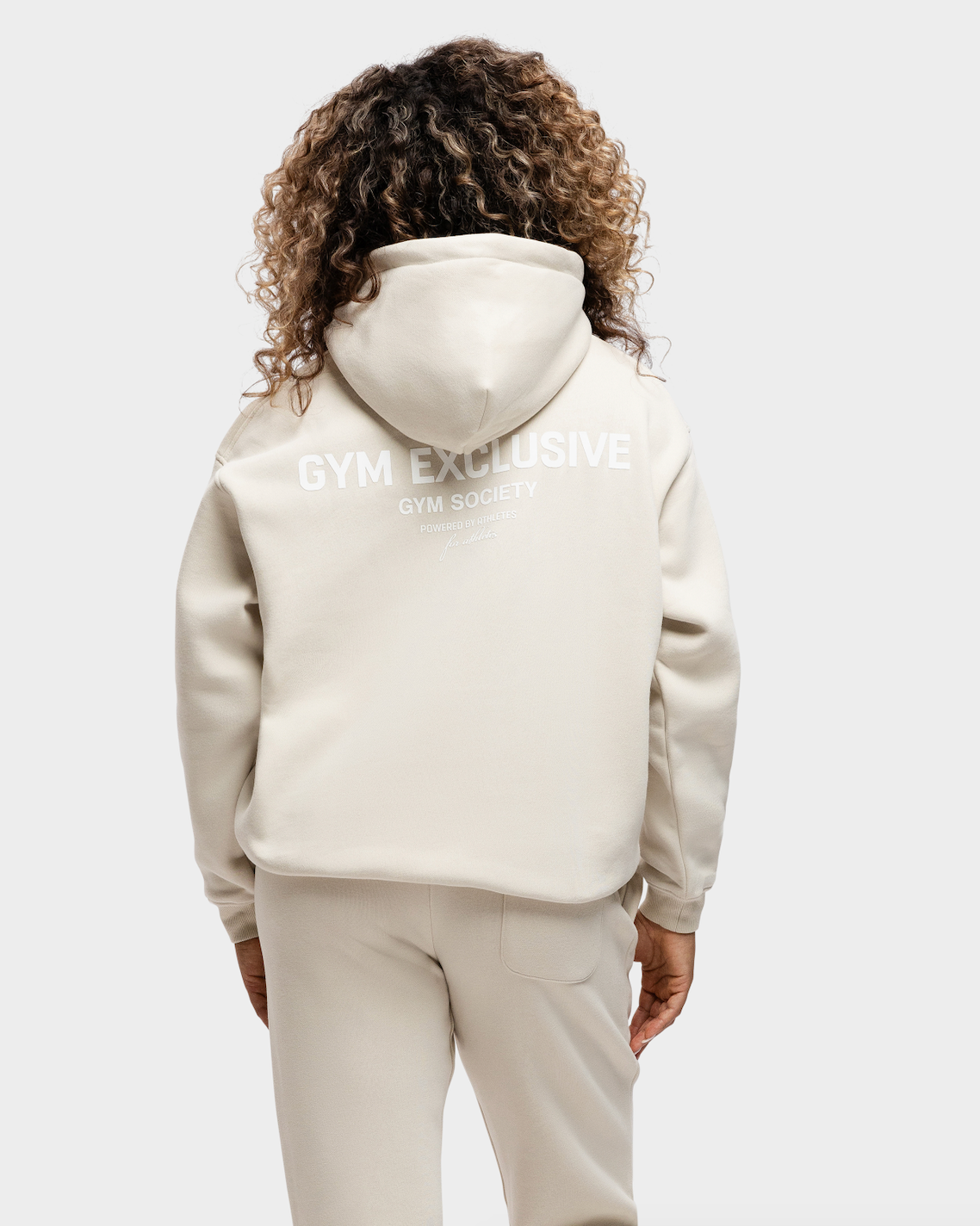 Our Gym Society Hoodie is made from soft cotton fabric blend, perfect for every season. It features dropped shoulders and an oversized silhouette. Style it with our Joggers for a complete look.