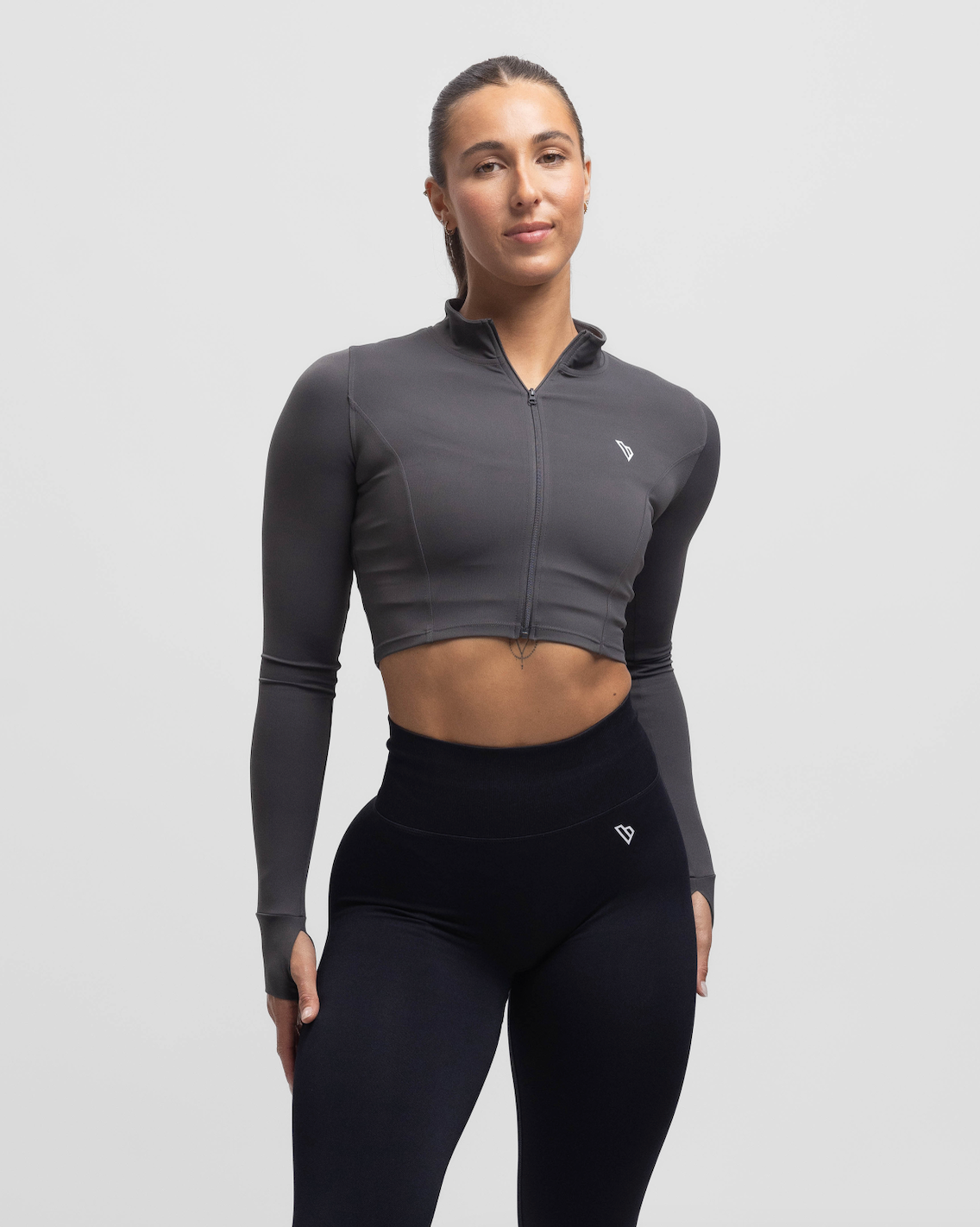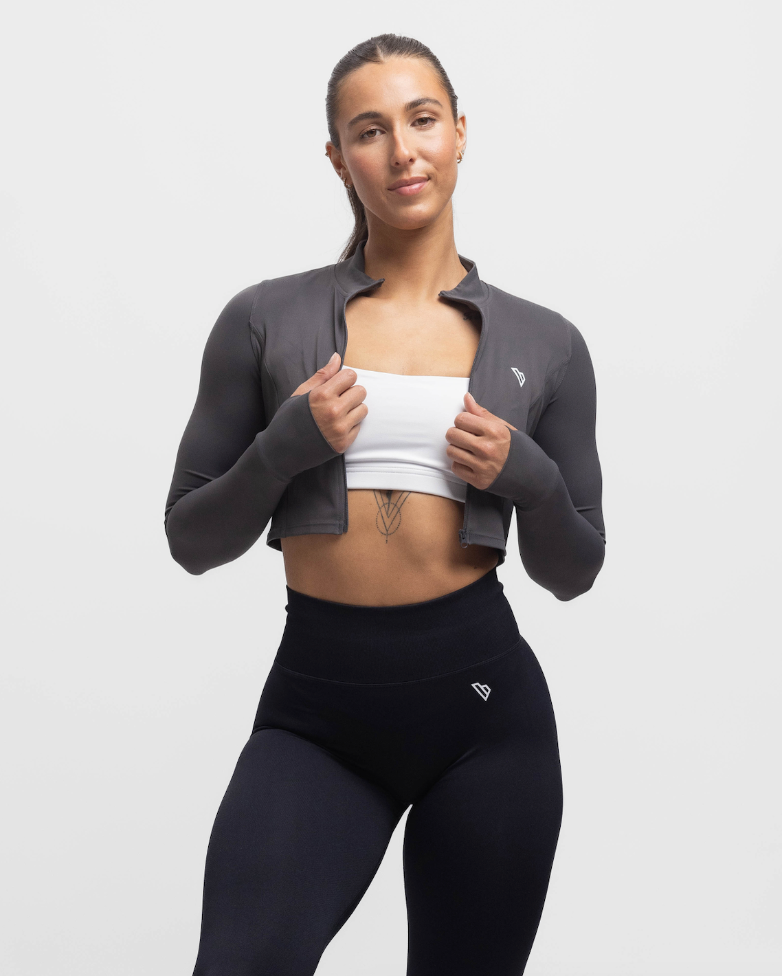 Een must-have voor je garderobe: de Sculpt Crop Jacket. Gemaakt van zachte, soepele stof, met duimopeningen voor extra comfort en een flatterende pasvorm.