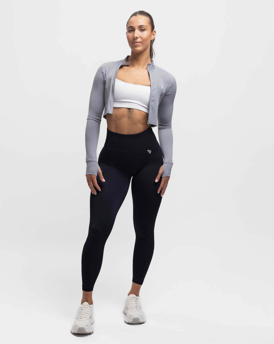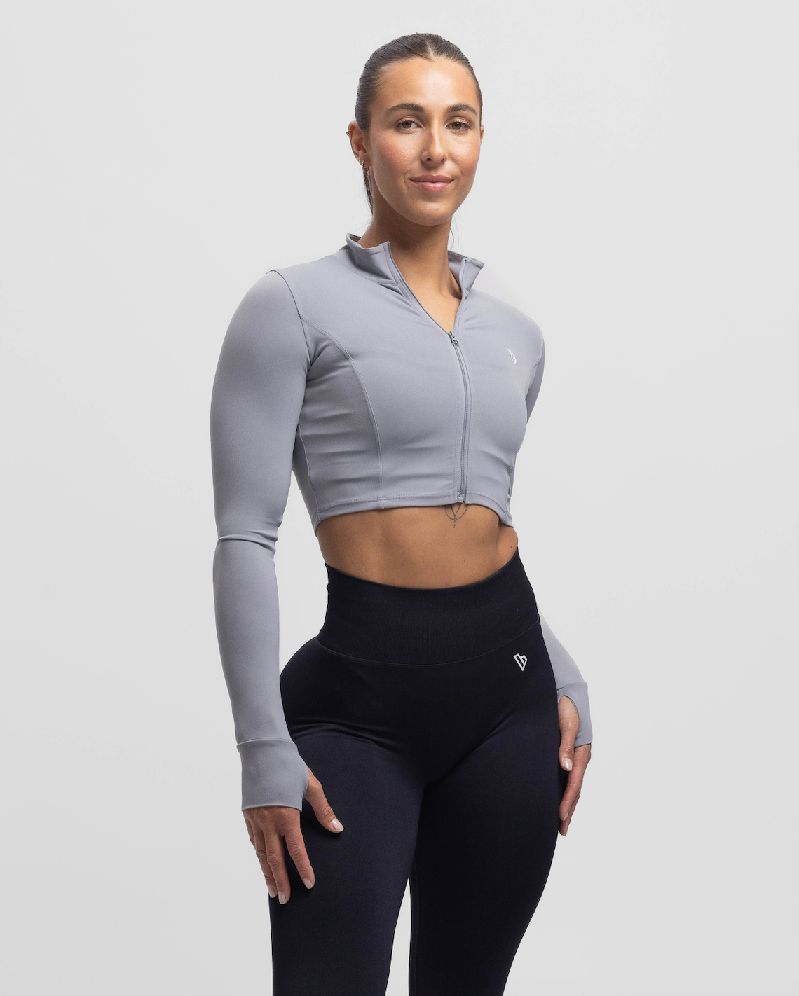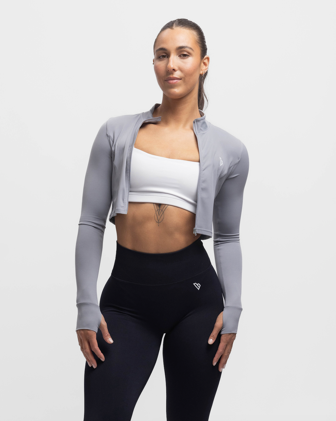 Een must-have voor je garderobe: de Sculpt Crop Jacket. Gemaakt van zachte, soepele stof, met duimopeningen voor extra comfort en een flatterende pasvorm.