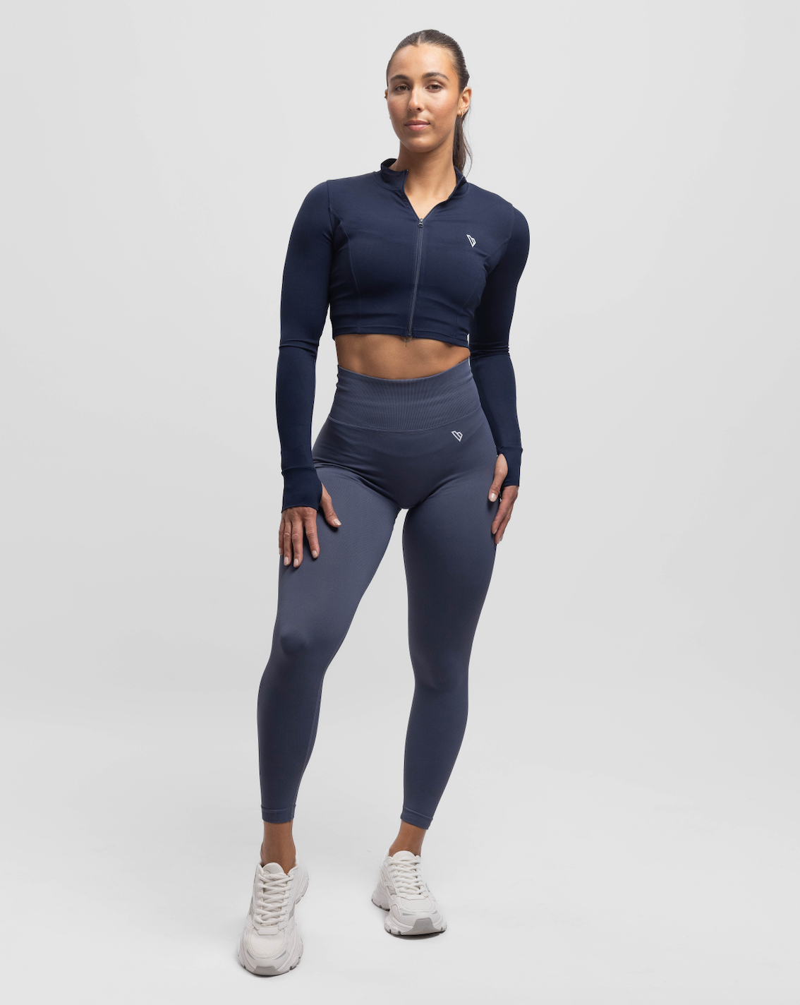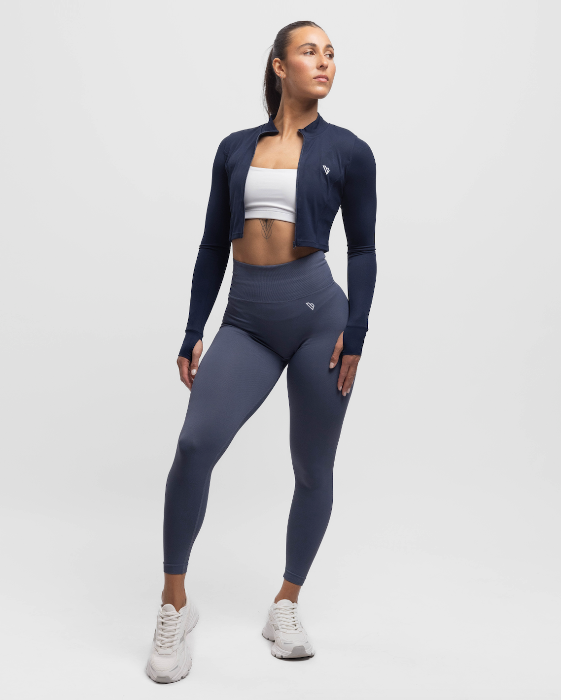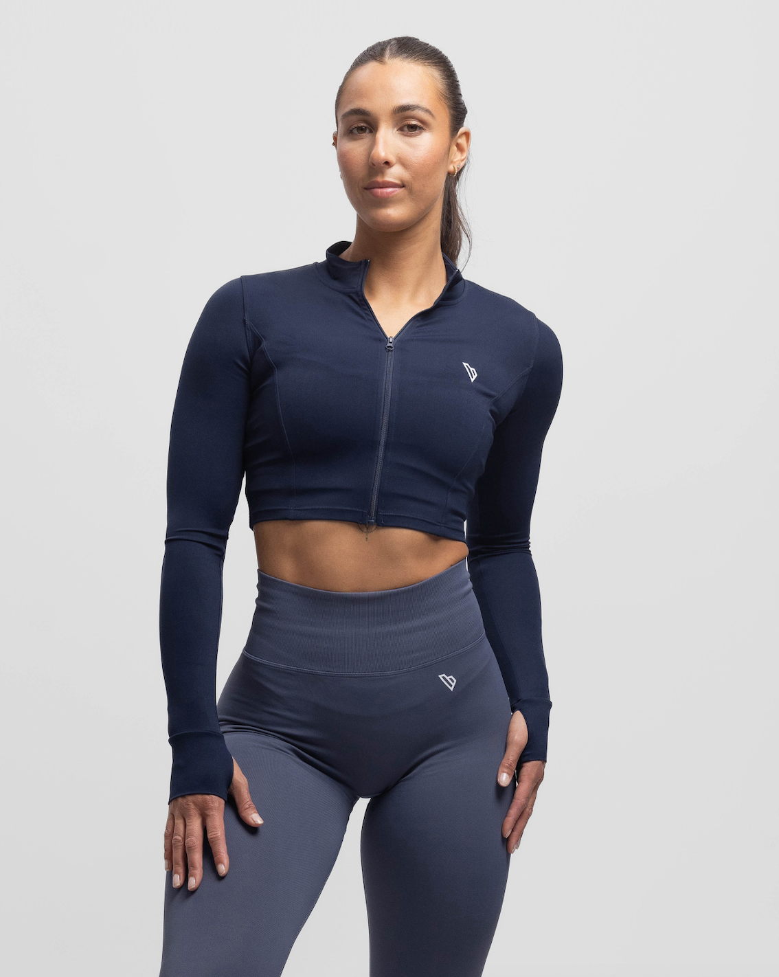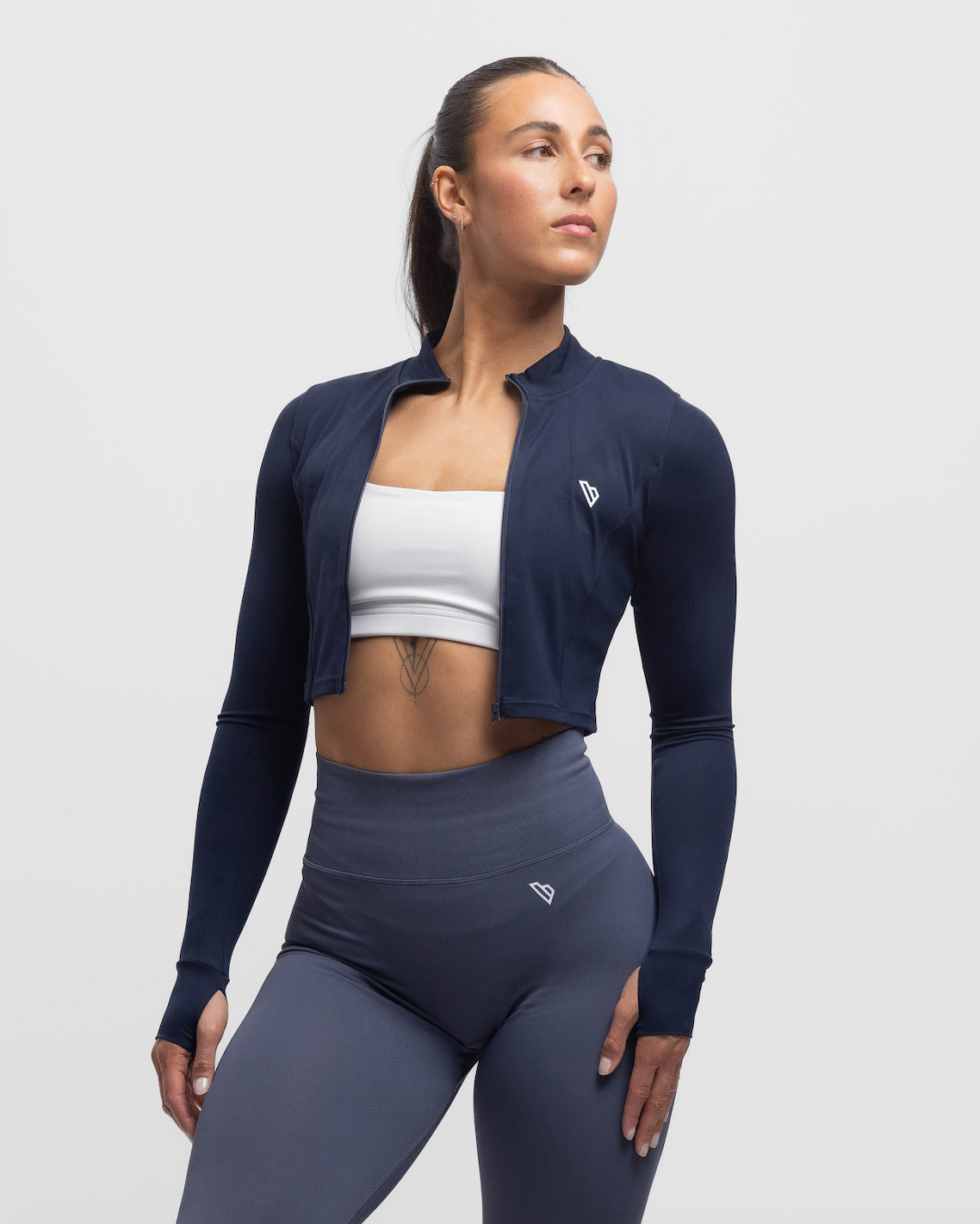 Een must-have voor je garderobe: de Sculpt Crop Jacket. Gemaakt van zachte, soepele stof, met duimopeningen voor extra comfort en een flatterende pasvorm.