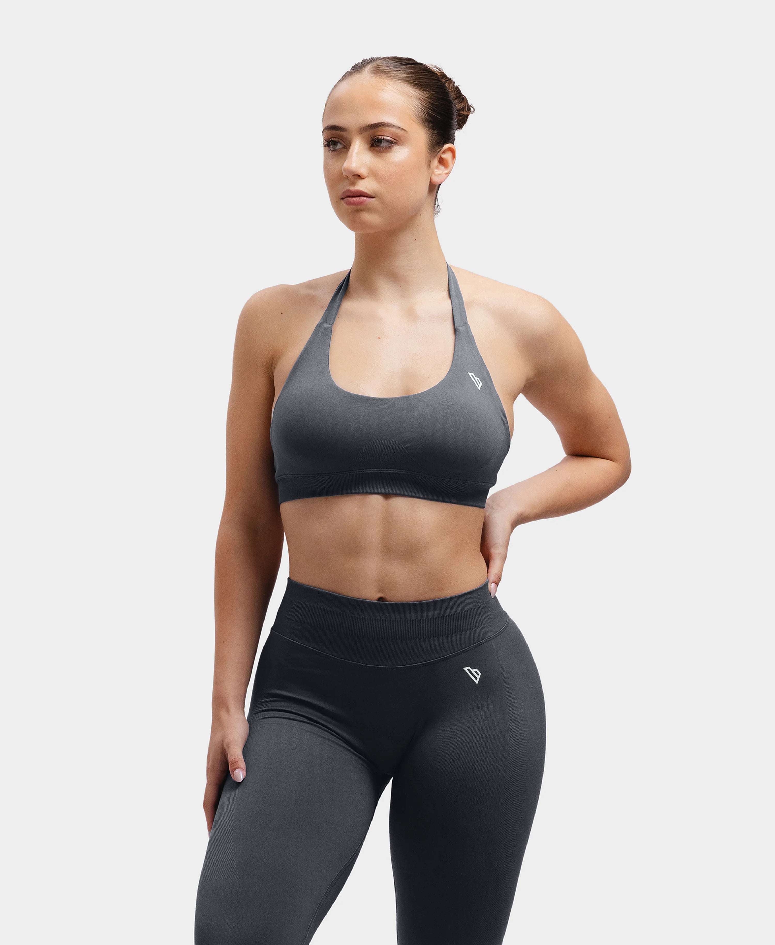 Maak kennis met onze Unified Sports Bra! Met een flatterende ronde halslijn die alle maten complimenteert en een veilige, comfortabele halterband, biedt deze crop zowel stijl als ondersteuning.