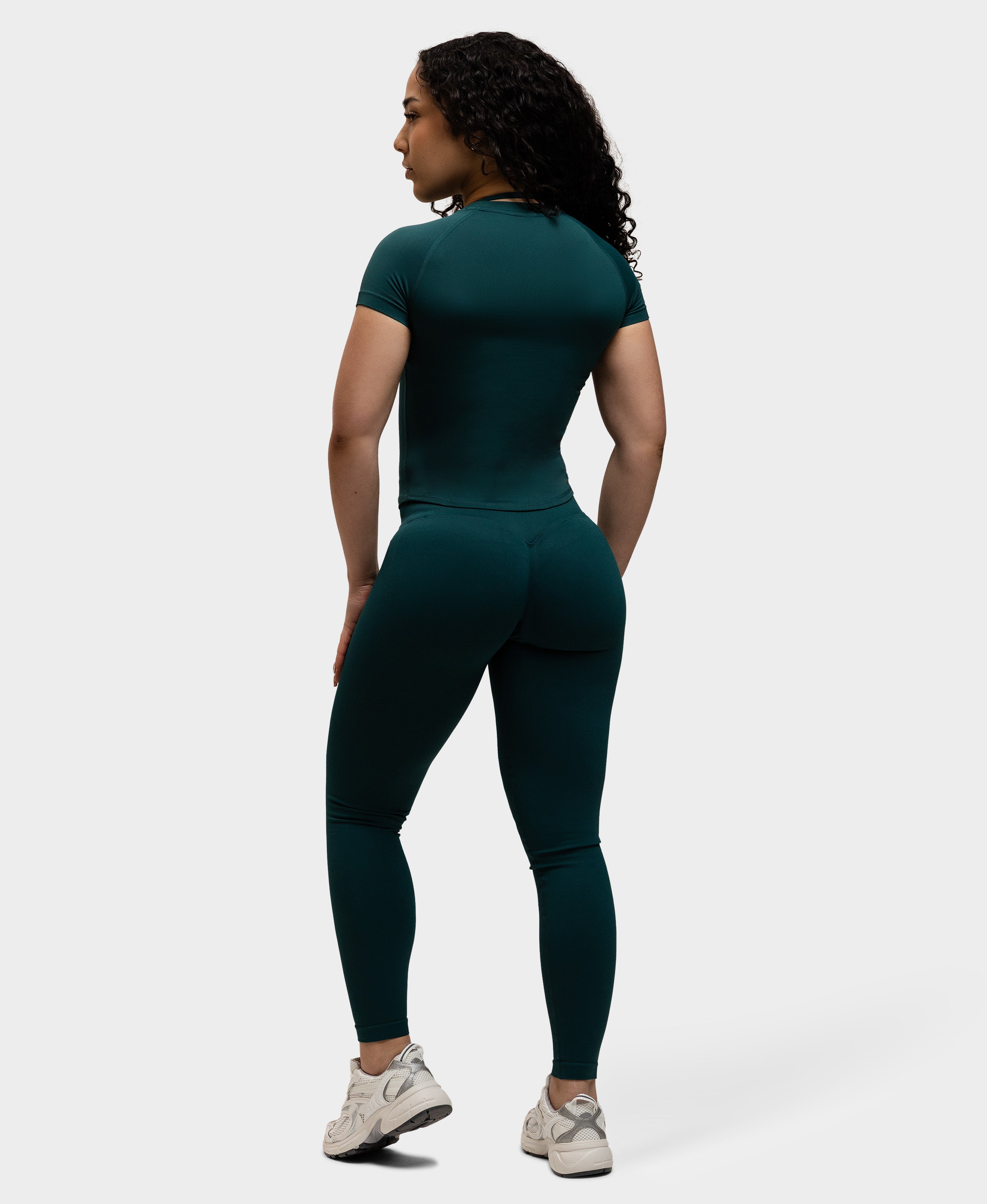 The Unified Contour T-Shirt is designed to sculpt and move with you like a second skin. Crafted from a buttery-soft, high-stretch fabric, this fitted silhouette features subtle contouring seamlines that enhance your natural shape. The high crew neckline delivers a clean, timeless look, making this piece as versatile as it is performance-ready.