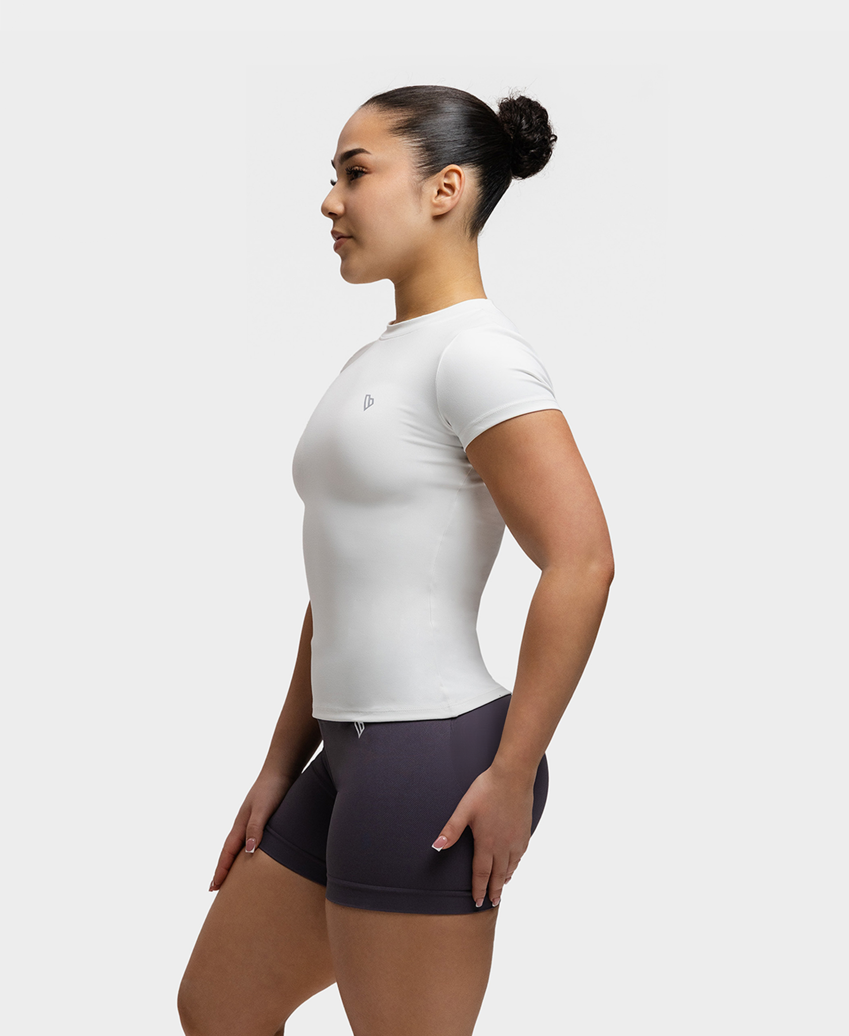 The Unified Fitted T-Shirt features a buttery-soft fabric that feels like a second skin. Its flattering seamlines enhance your silhouette, and the high crew neckline adds a classic touch. This versatile, comfortable piece can be dressed up or down, making it a perfect wardrobe staple.
