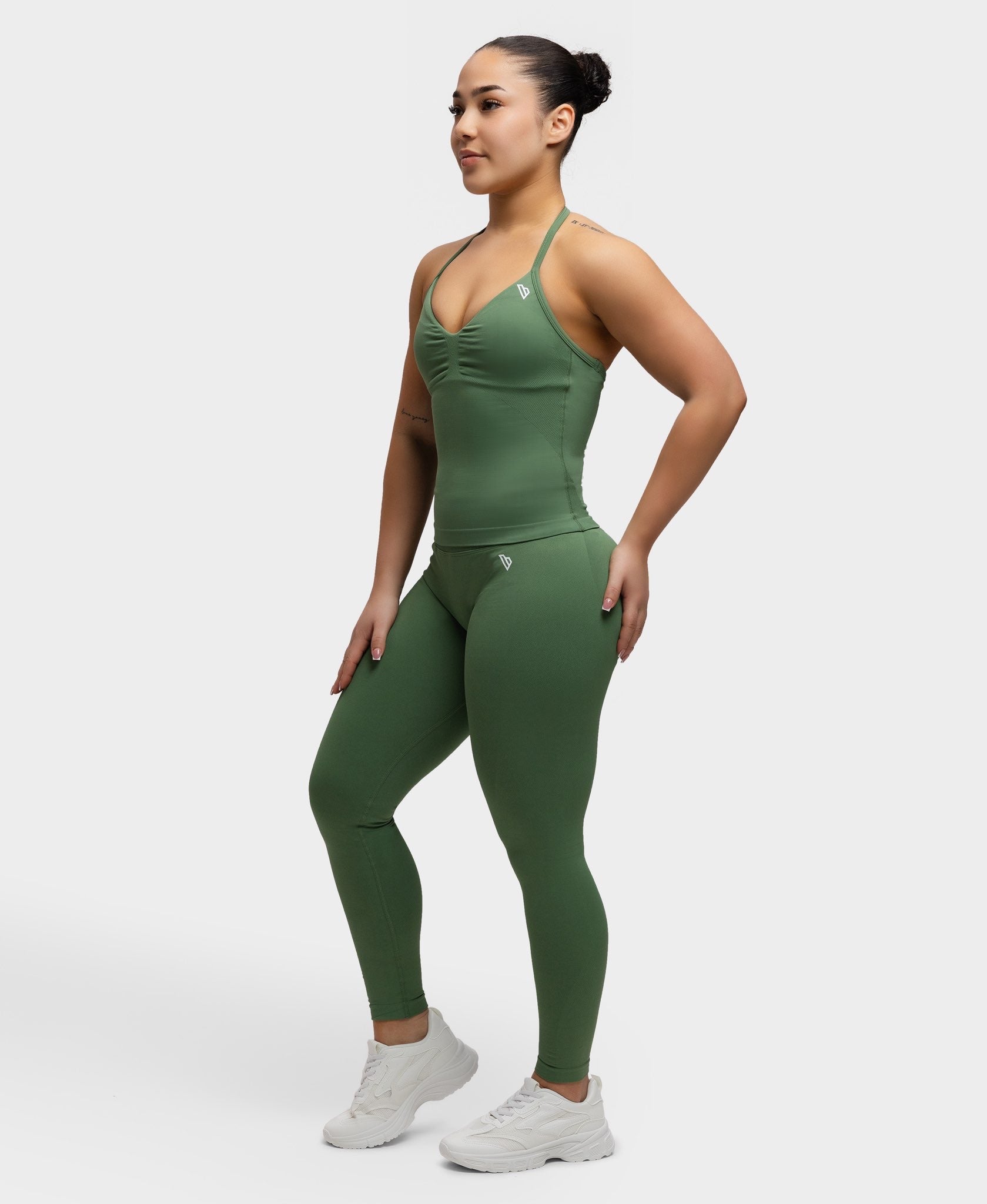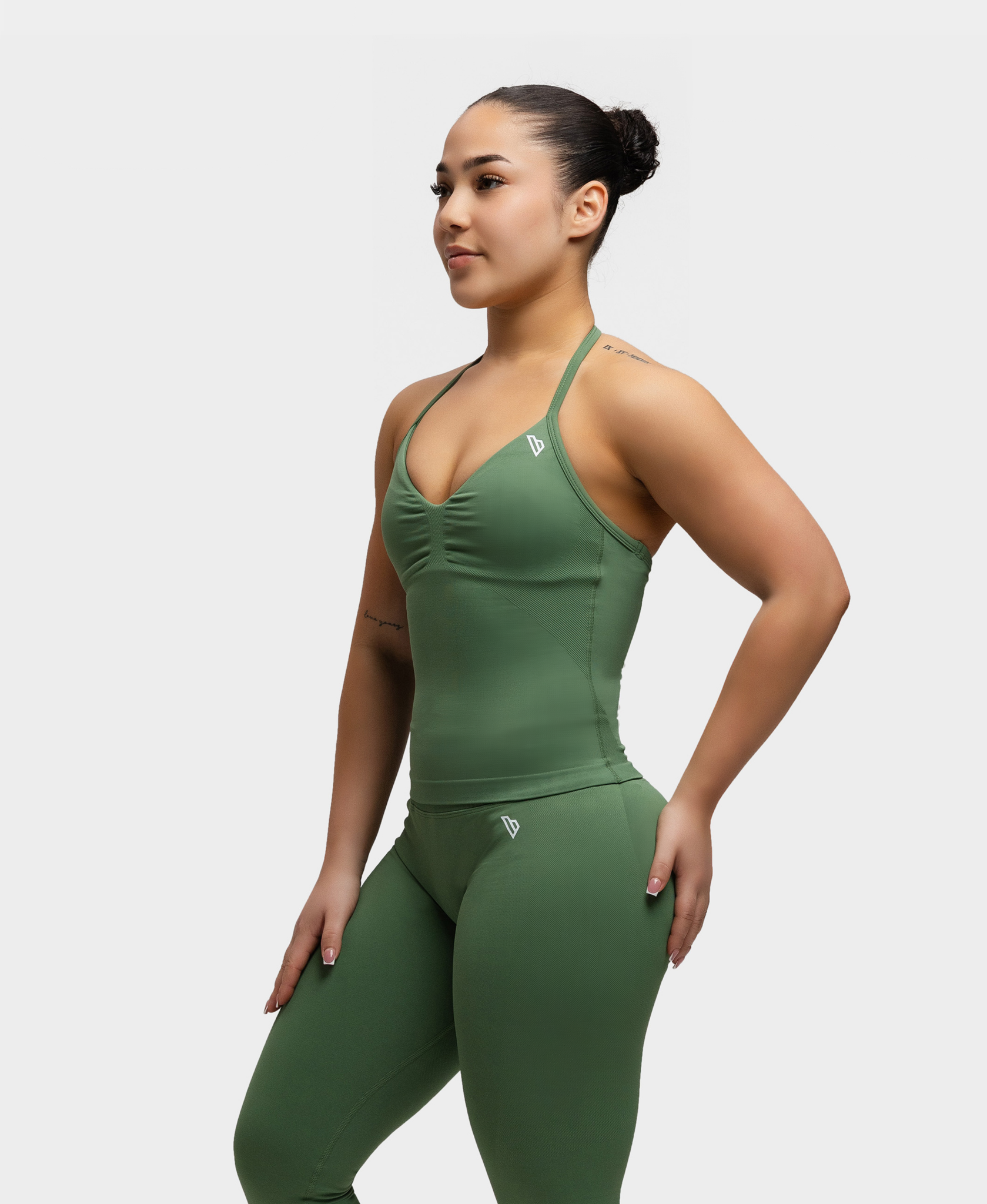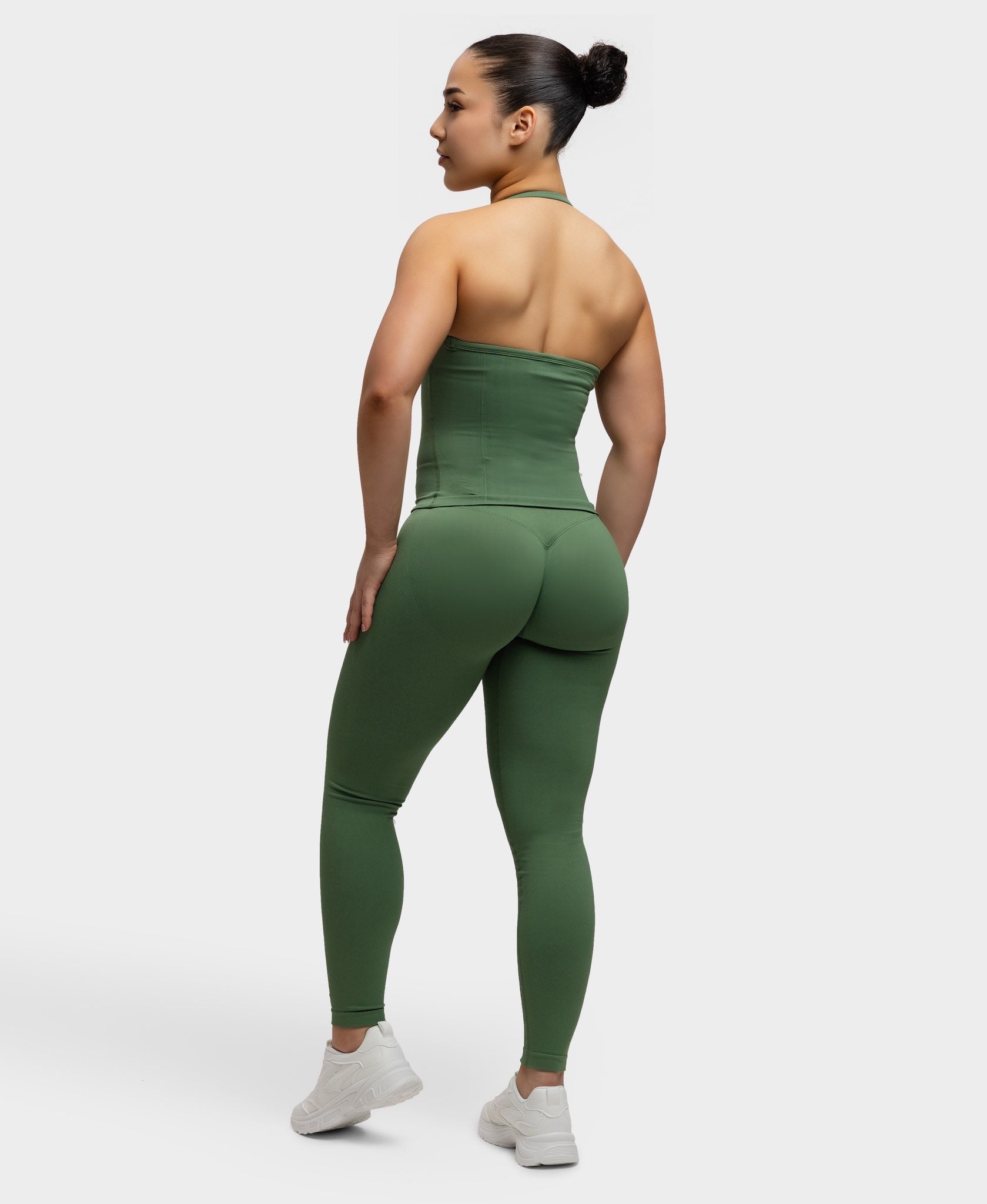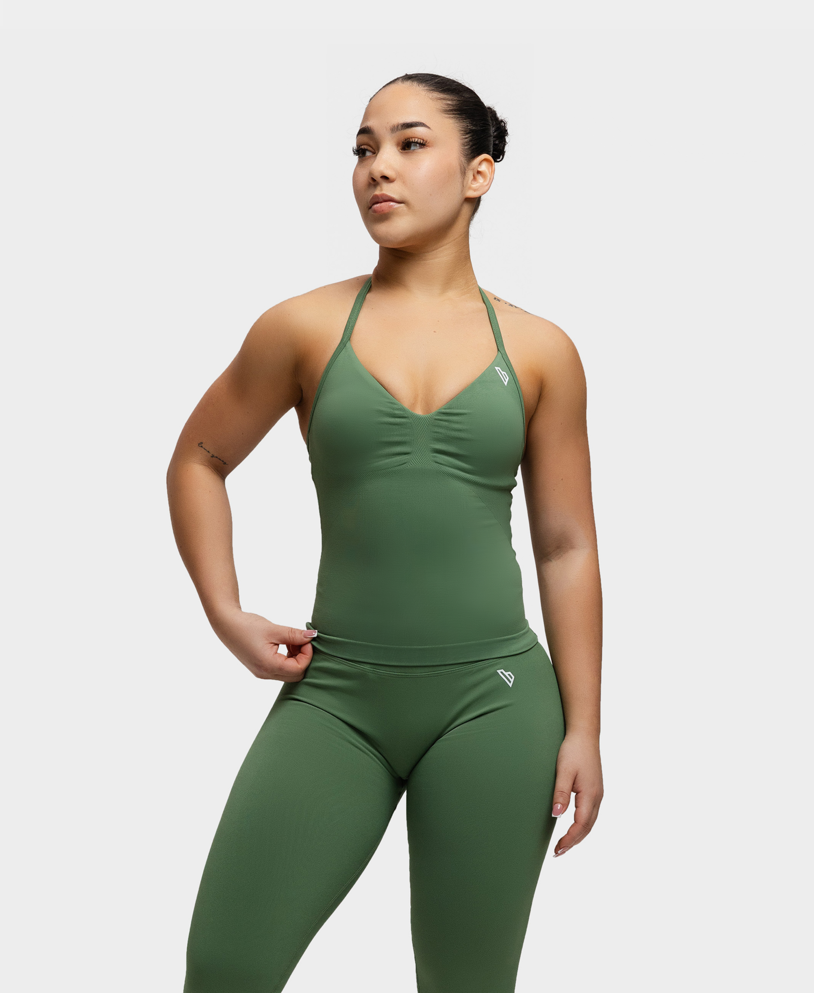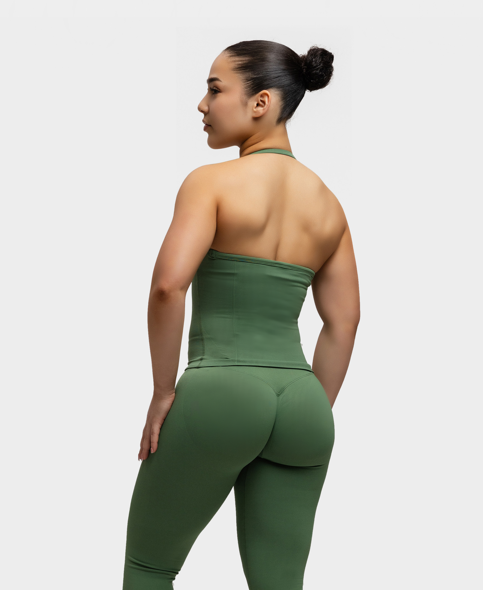 Designed with a flattering strappy halterneck and open back to highlight your gains, Blending performance with style, this halter top hugs in all the right places and includes a built-in bra with removable pads for a fit that works with you.