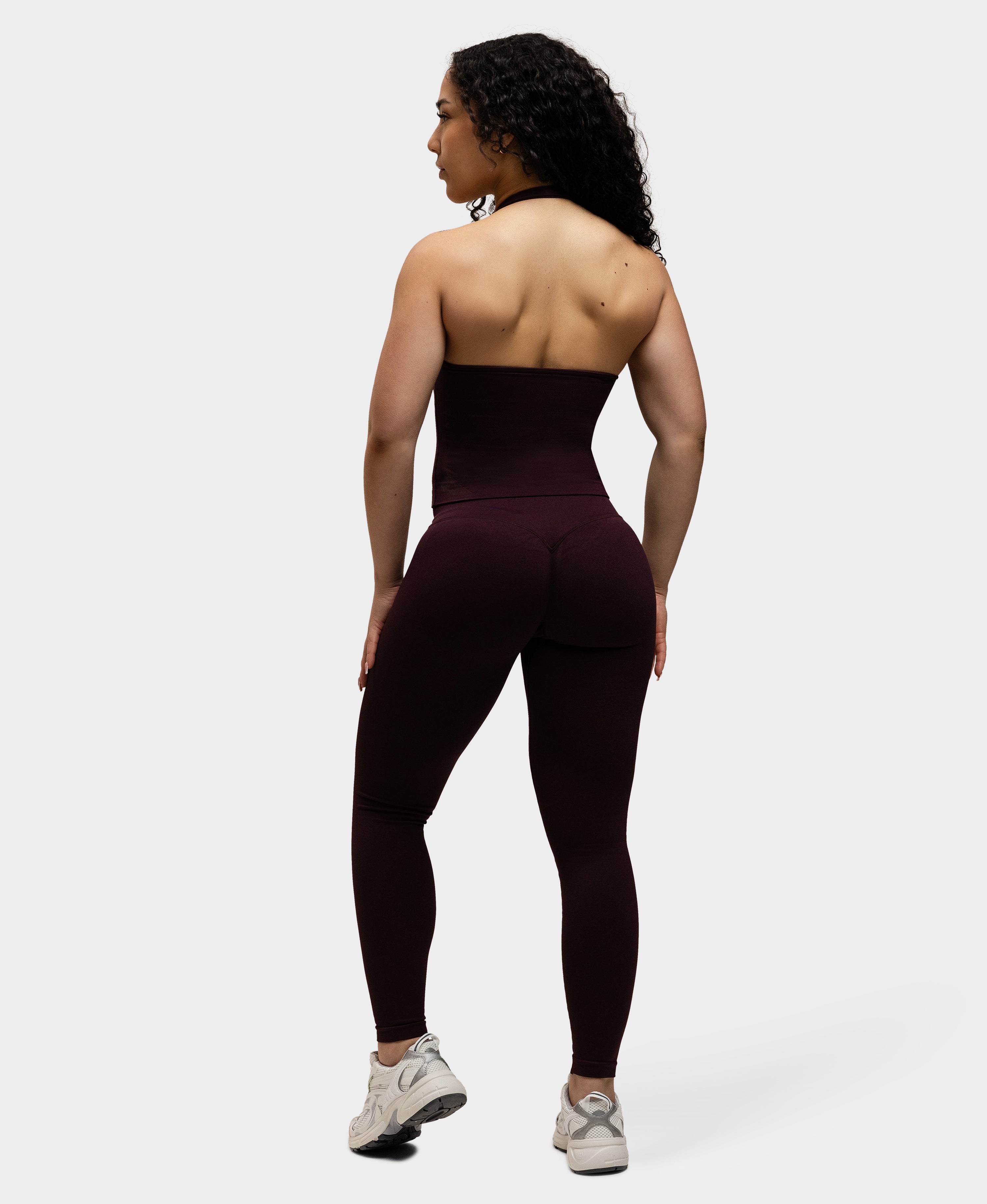 Designed with a flattering scoop neckline and sleek halter silhouette, this top enhances your shape while offering confident support. The open-back design highlights your physique, while the seamless, body-hugging fit blends performance with a clean, elevated aesthetic.