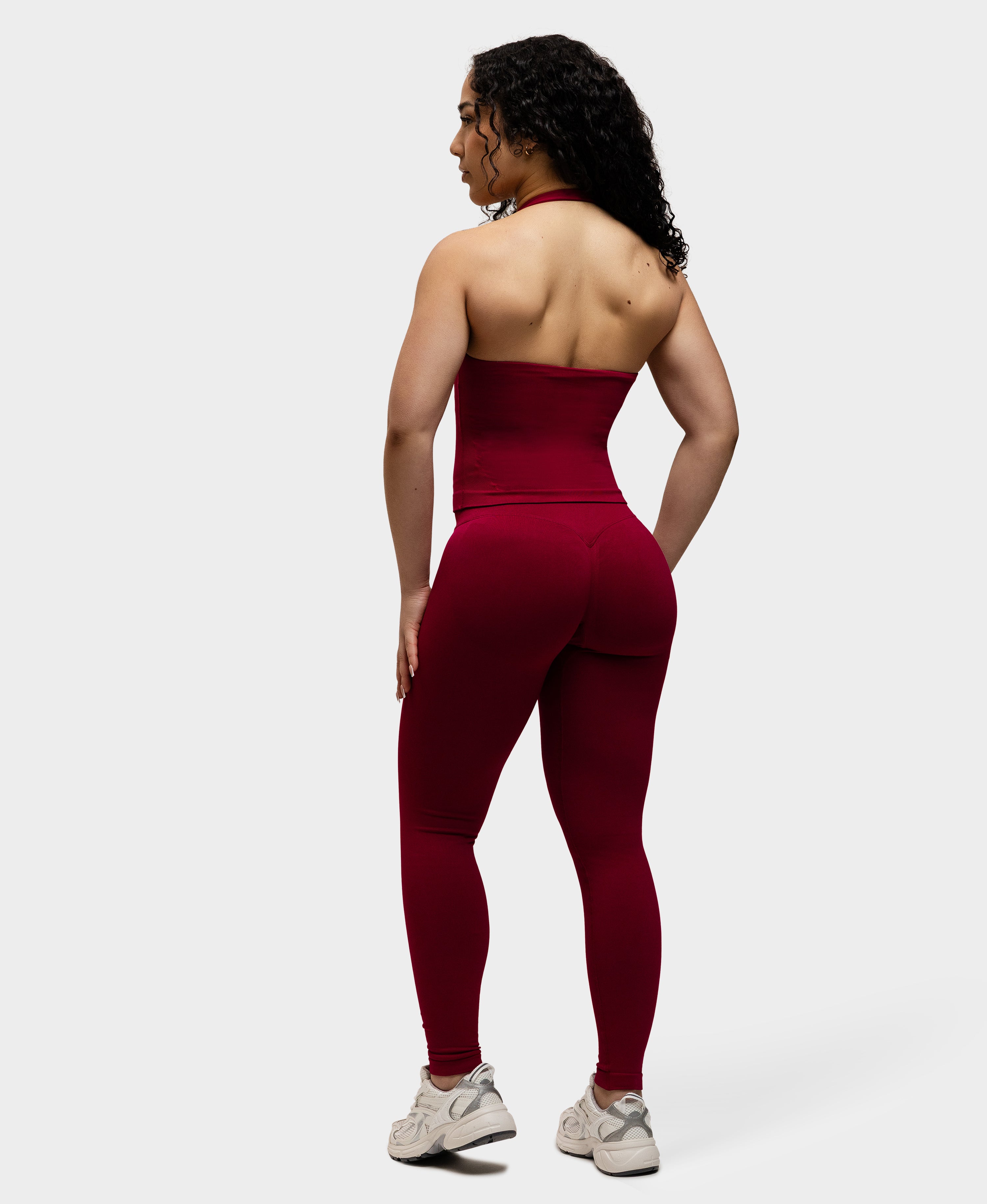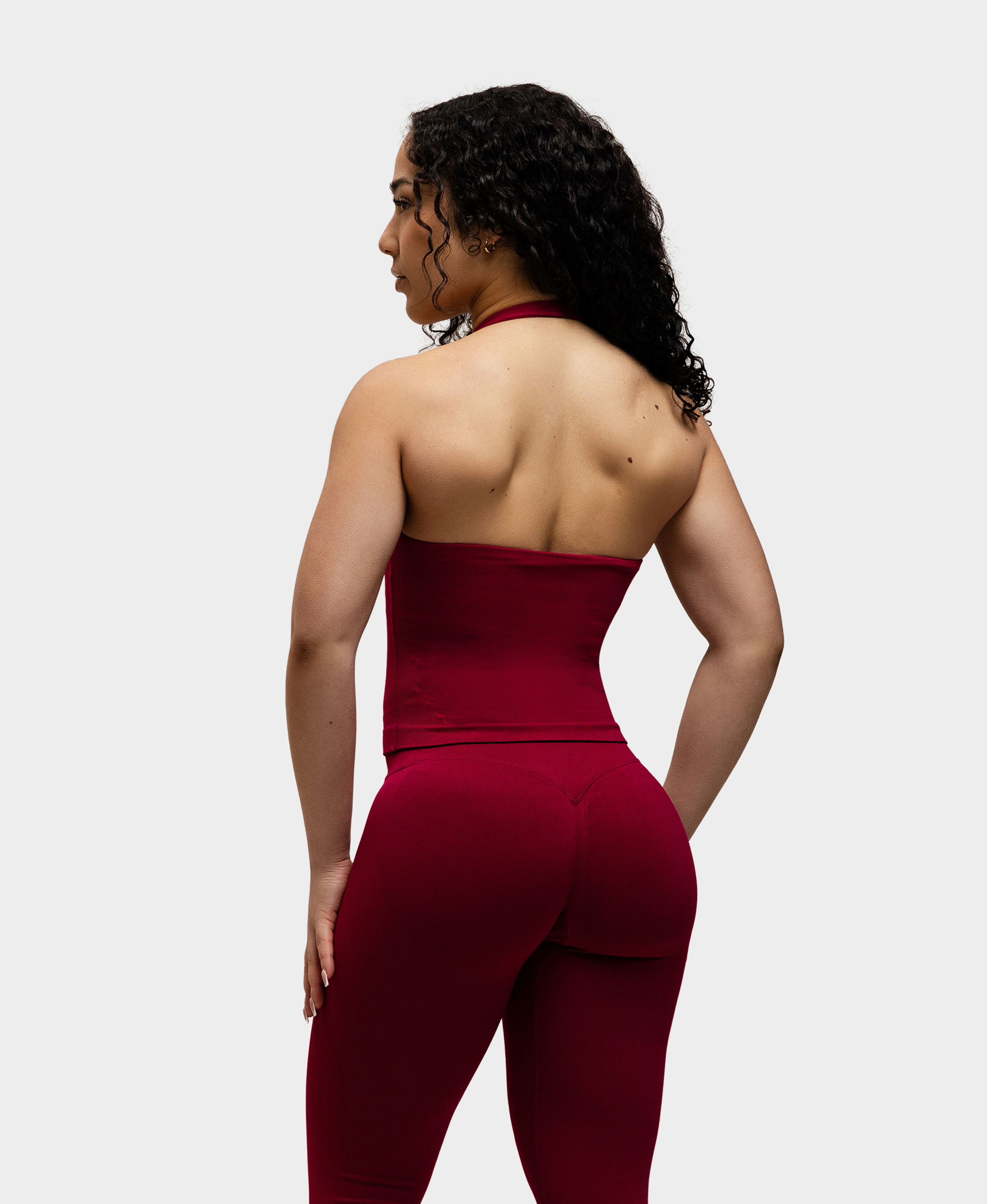 Designed with a flattering scoop neckline and sleek halter silhouette, this top enhances your shape while offering confident support. The open-back design highlights your physique, while the seamless, body-hugging fit blends performance with a clean, elevated aesthetic.