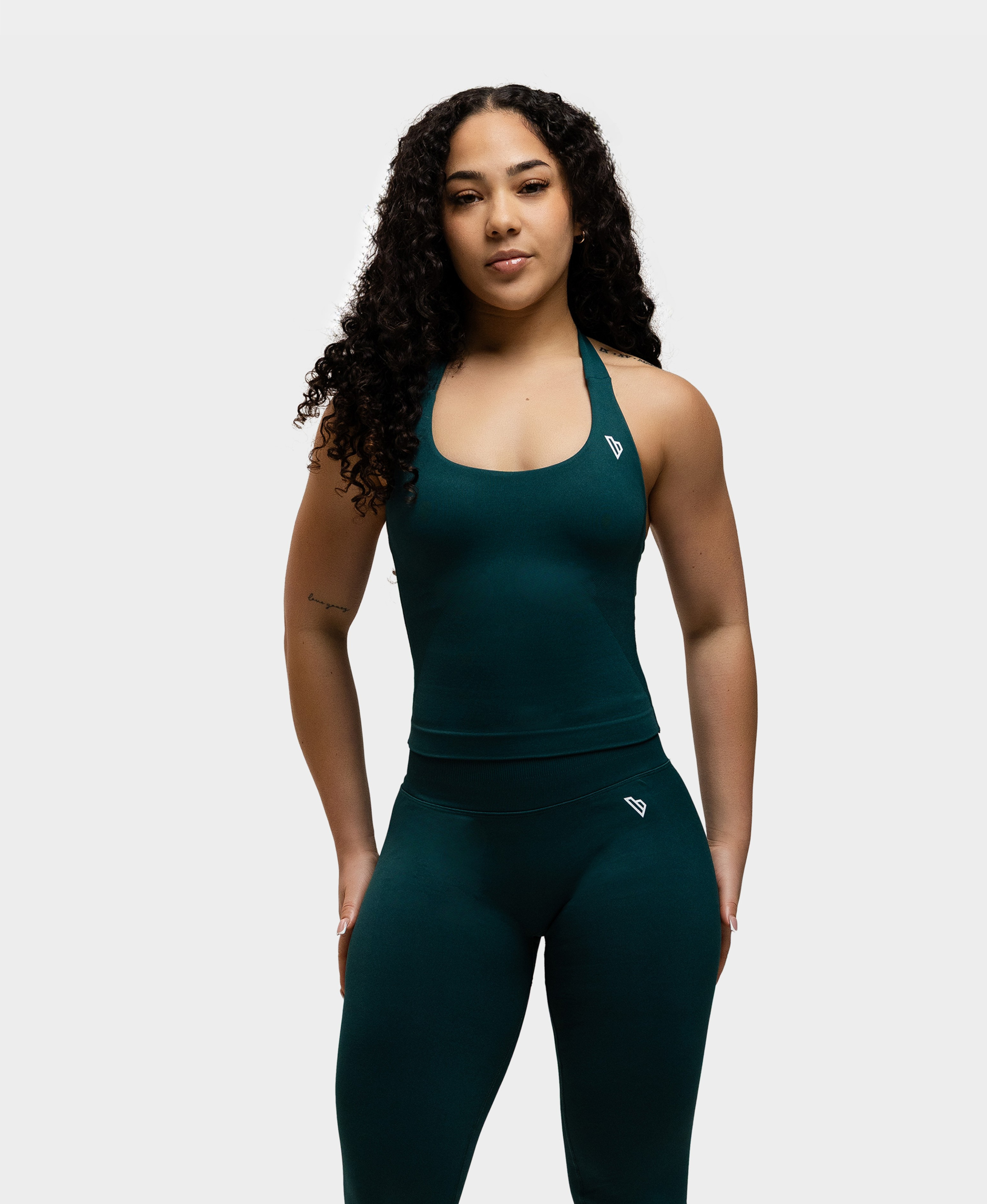 Featuring a built-in bra with removable pads, the Unified Scoop Halter Top delivers comfort and flexibility that moves with you through every workout and beyond.