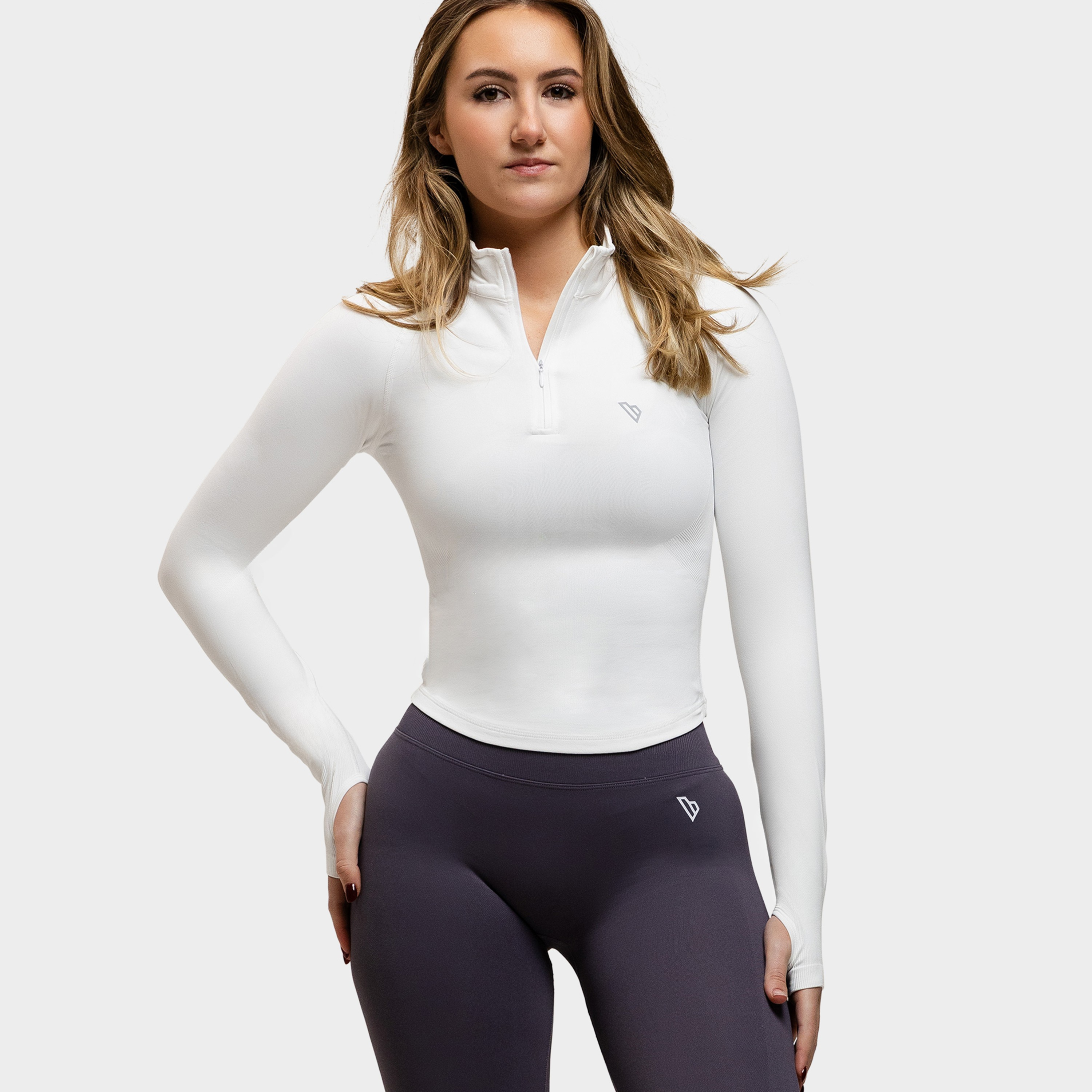 the Unified Zip Pullover is designed to move seamlessly with you. Featuring a second-skin fit and sculpting contour seamlines, this layer delivers a sleek, flattering silhouette without compromising on performance. Crafted from a soft, durable 4-way stretch fabric, it offers comfort and flexibility wherever your training or day takes you.