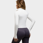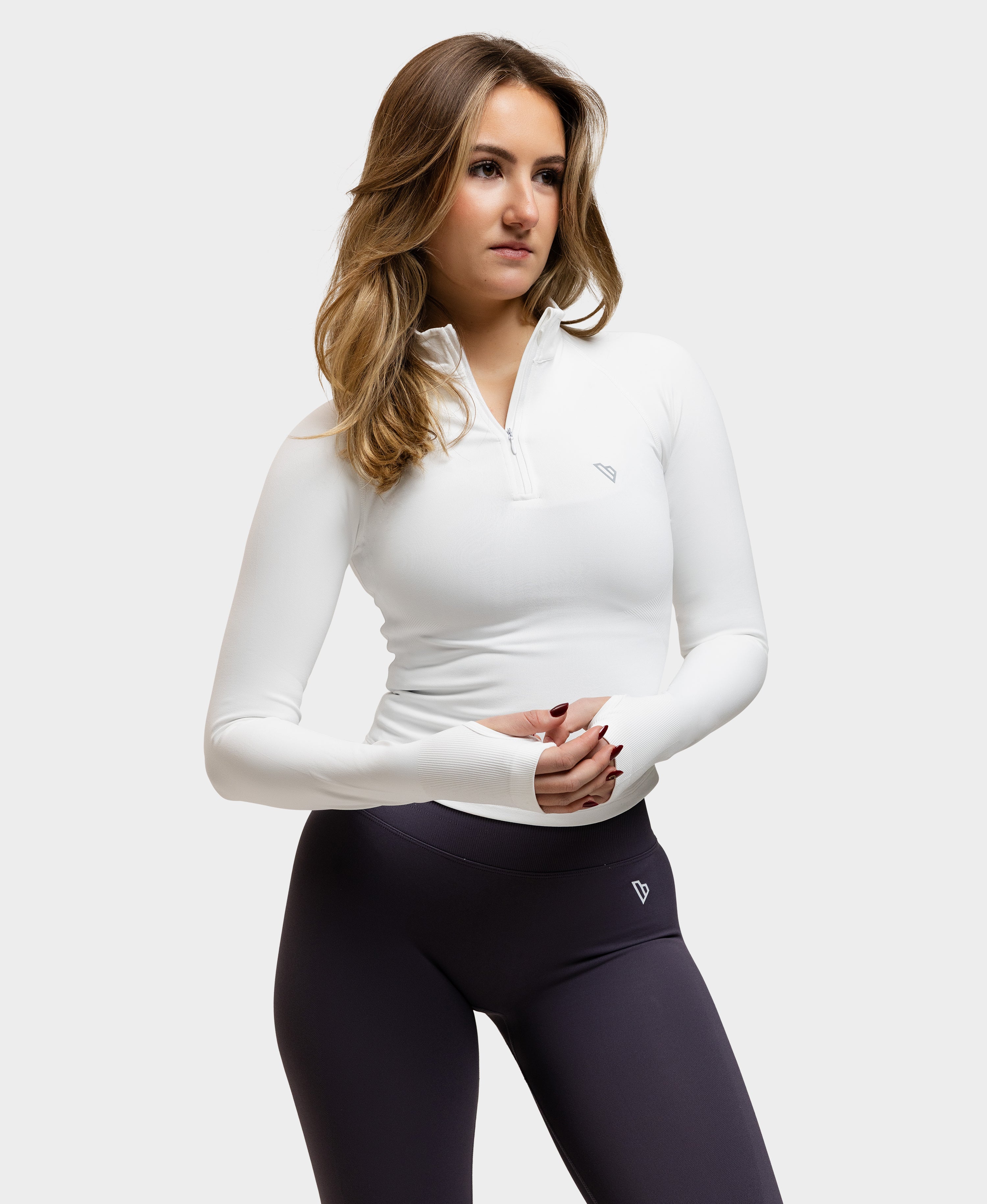 the Unified Zip Pullover is designed to move seamlessly with you. Featuring a second-skin fit and sculpting contour seamlines, this layer delivers a sleek, flattering silhouette without compromising on performance. Crafted from a soft, durable 4-way stretch fabric, it offers comfort and flexibility wherever your training or day takes you.